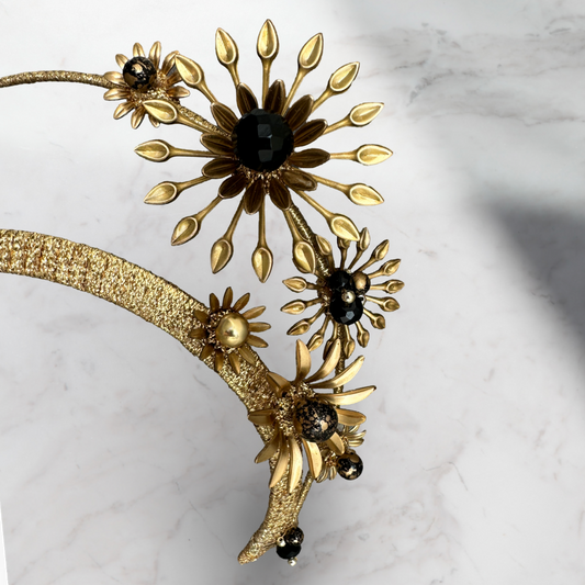 Gilly Gold Mirror Floral Leather - Headband *MADE TO ORDER*