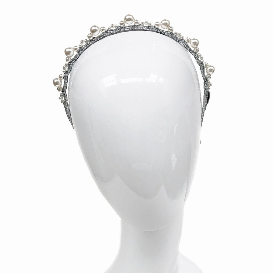 • Meticulously handcrafted featuring off white coloured Swarovski pearls. Finished perfectly on a comfortable seamless headband featuring luxe silver metallic thread.